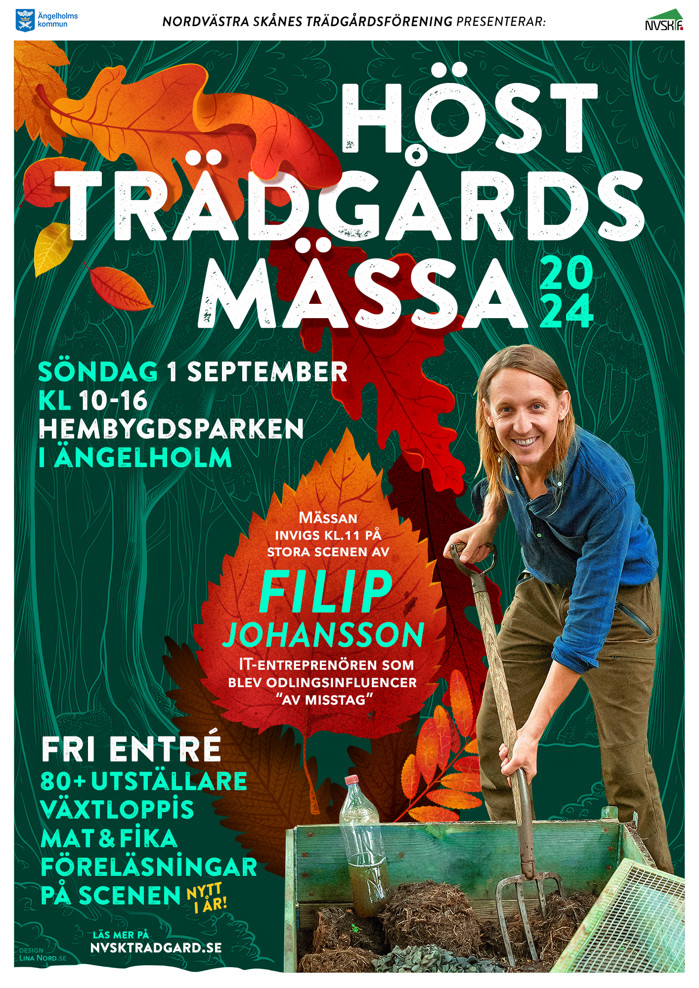 The poster and postcard for the 2024 gardening fair in Ängelholm, arranged by Nordvästra Skånes Trädgårdsförening. By : lina